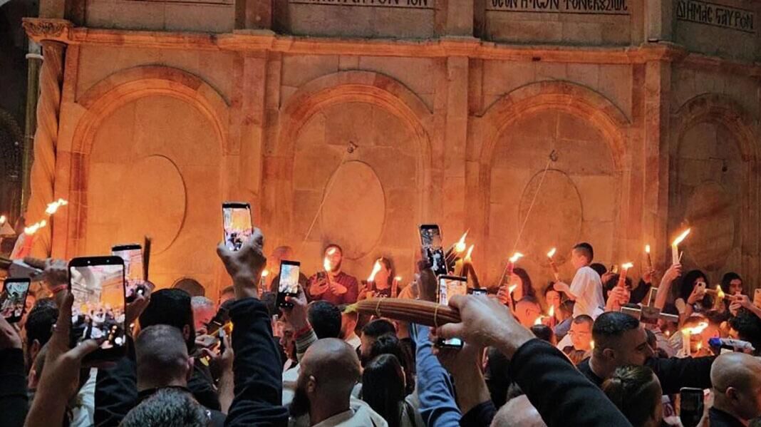 Благодатный огонь ежегодно появляется накануне православной Пасхи в Кувуклии — часовне над Гробом Господним в храме Гроба Господня в Иерусалиме, благодаря молитвам Иерусалимского патриарха и верующих. После схождения огня патриарх Иерусалимский зажигает им свечи и раздаёт огонь собравшимся в храме духовенству и мирянам, в числе которых была и делегация Фонда Андрея Первозванного.